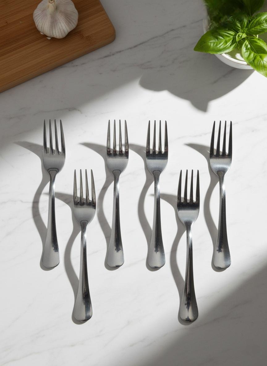 - 6 stainless steel forks with polished tines